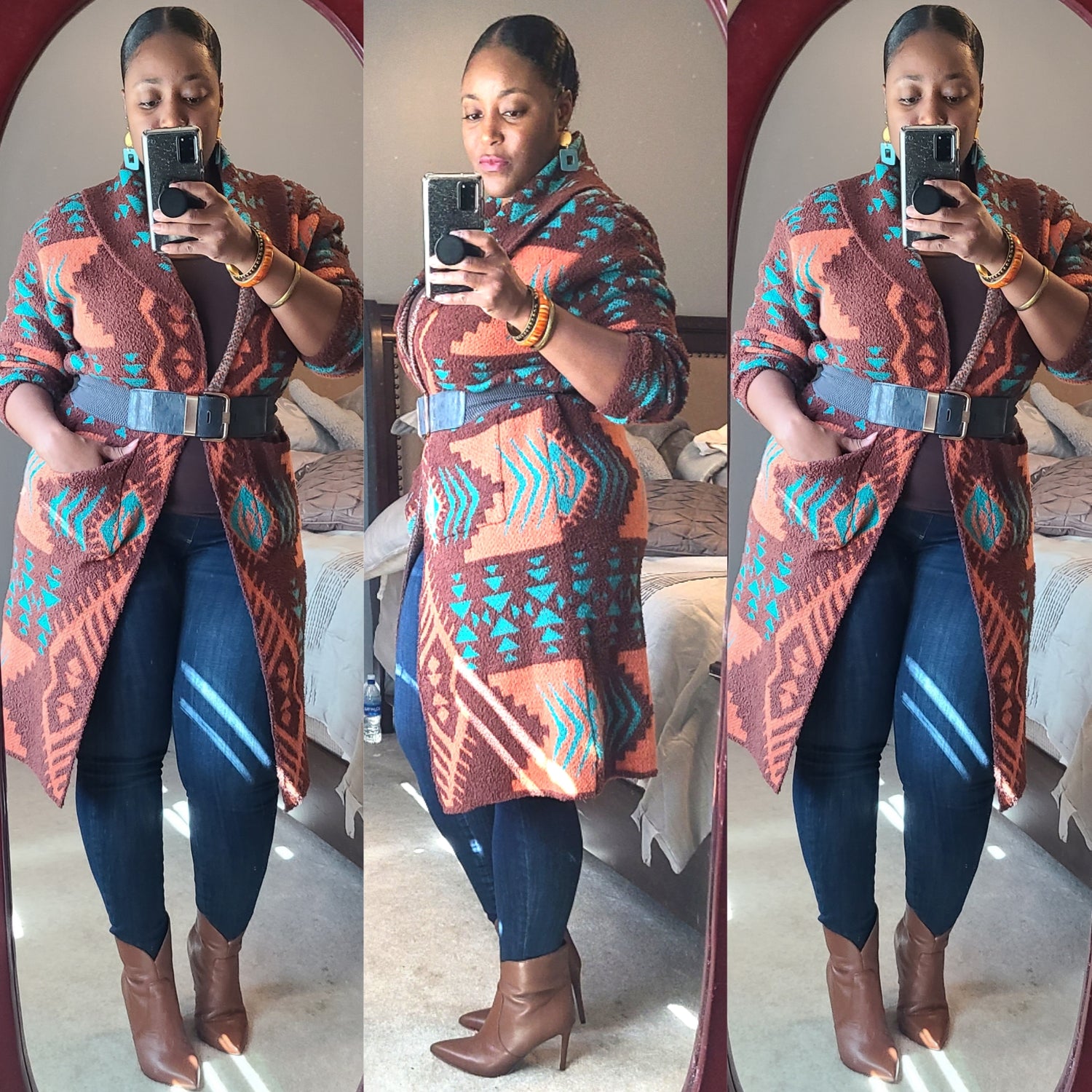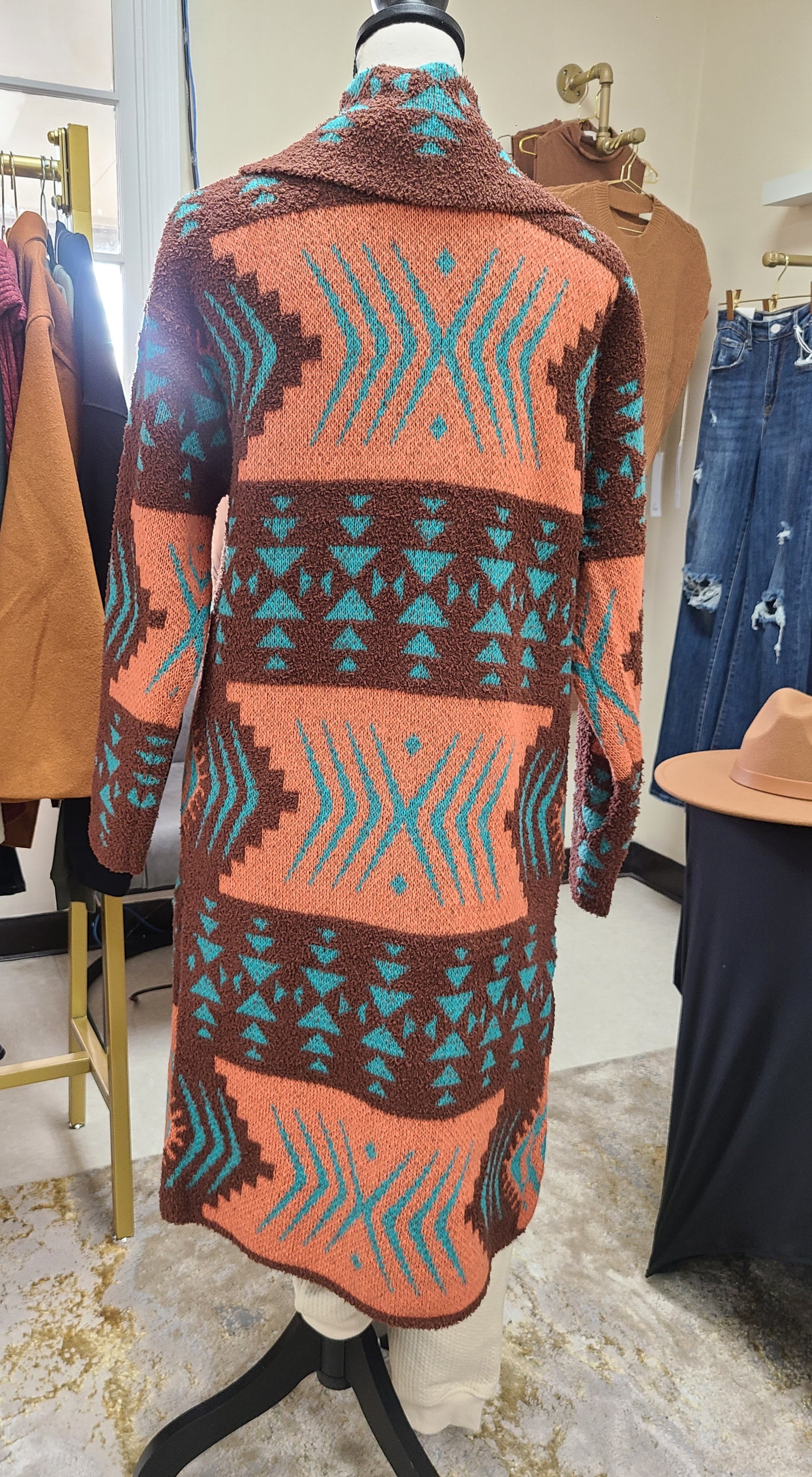 If you're looking for cute and warm, The Aiyana Tribal Print Cardigan is the perfect fit! We love the fun colors! Fun Fact: We gave this Cardigan the Tribal name Aiyana. Aiyana means eternal bloom/ever blooming flower!