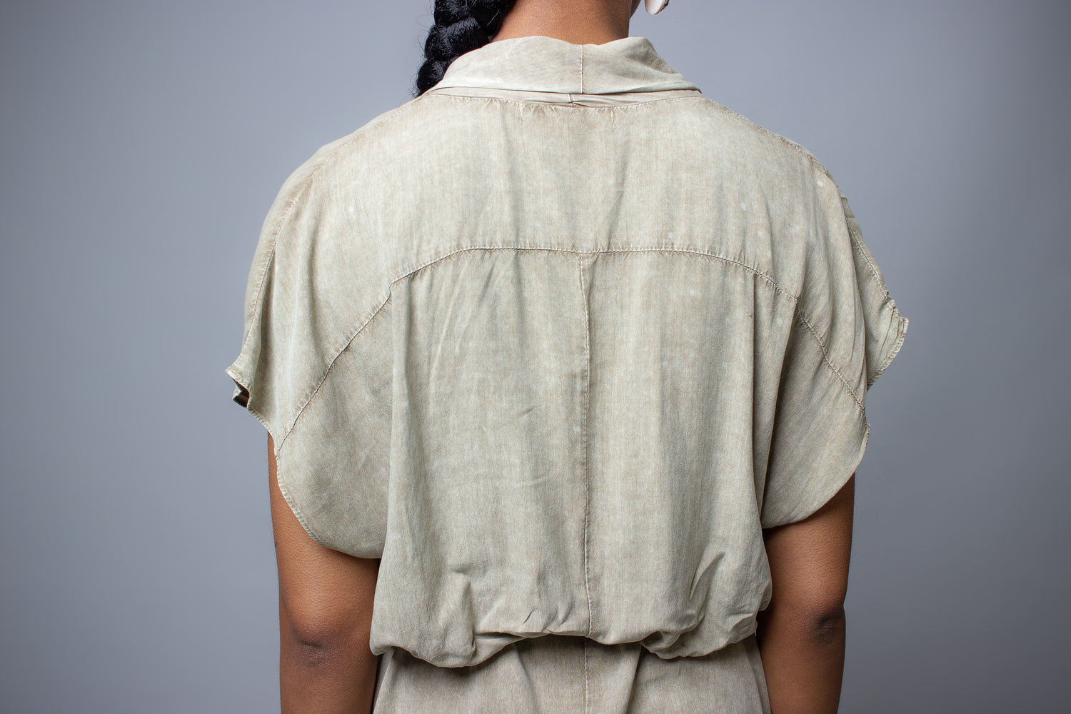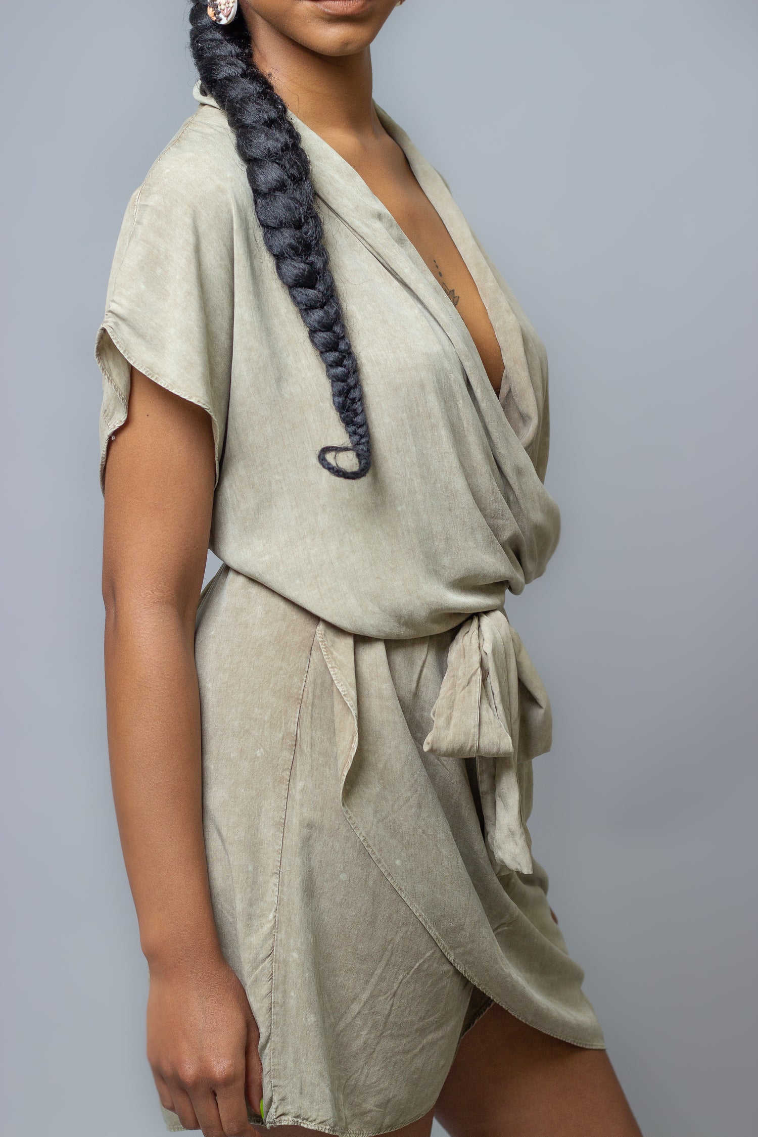Taupe Overlap Draped Dress. Fun and cute for date night or Brunch with the girls! Pair it with heels or your favorite flats, sandals or boots!